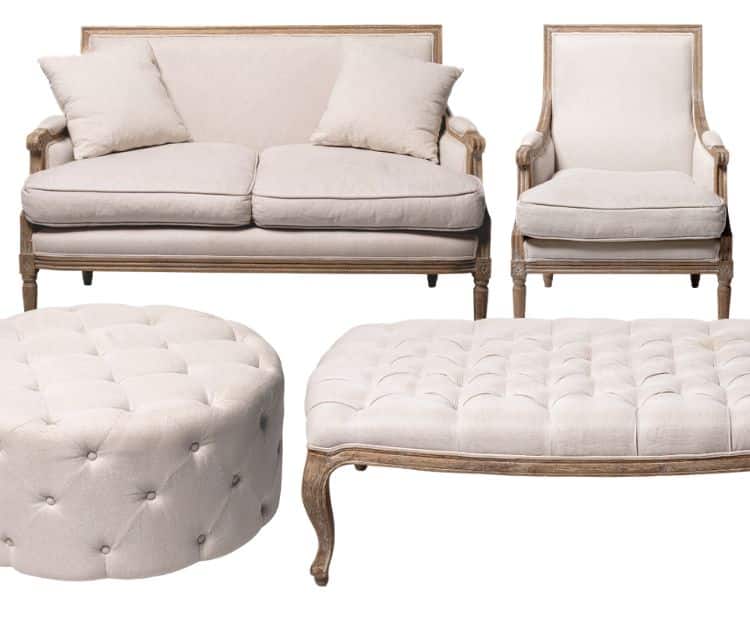 With natural linen, warm timber detail and classic ornate shapes, the Brittany Collection reflects the rustic charm of provincial living. Available in a full lounge setting including lounge, armchair and coffee table, the range seamlessly transports your event to the comfort of a country chateau or farmhouse.