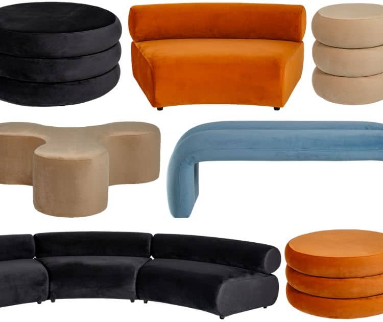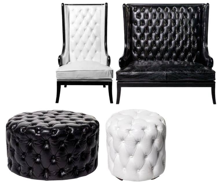 The Hudson Collection offers streamline lounges with soft feminine curves and a study base. Pair these with eclectic ottomans in midnight shades for evening functions where moody lounging is a must.